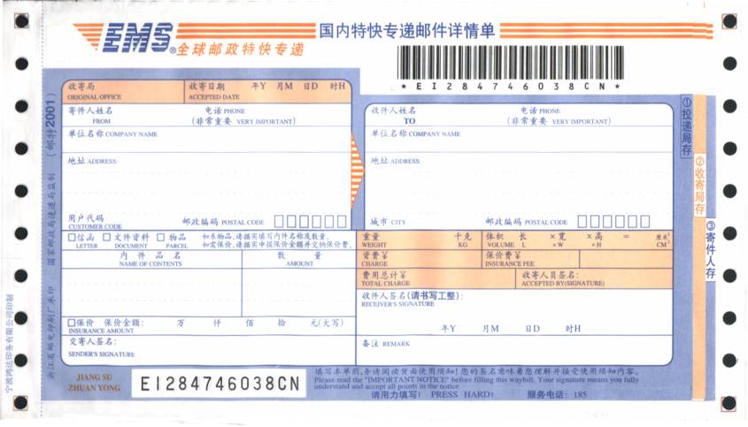 ◆ 速递公司的样张-DHL ◆ 速递公司的样张-EMS